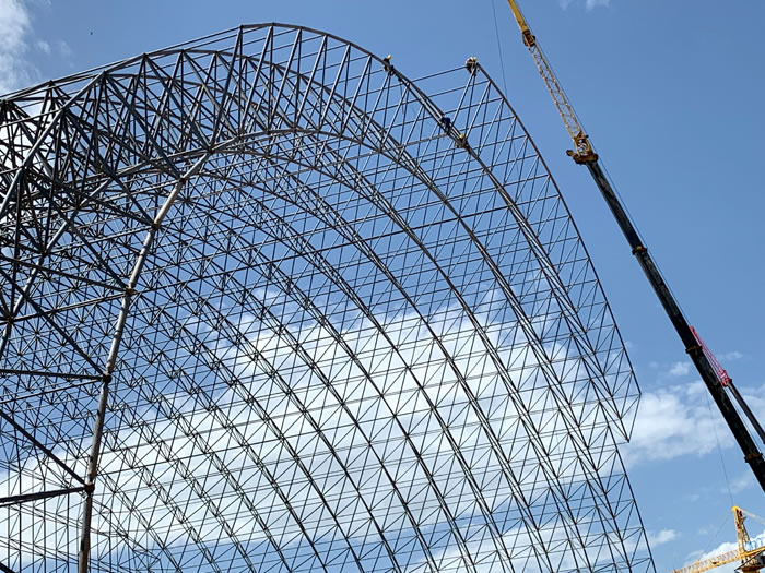 (2)网架加工前应对现场尺寸进行复测,确认无误后方可进行加工、安装;网架制作、运输、安装应遵守《空间网格结构技术规程》JGJ7-2010、《钢网架沙河螺栓球节点》JG/T 10-2009、《钢网架沙河螺栓球节点用高强度螺栓》 GB/T 16939-2016、《沙河钢结构沙河工程沙河施工规范》 GB50755-2012、《沙河钢结构沙河工程施工质量验收标准》 GB50205-2020。